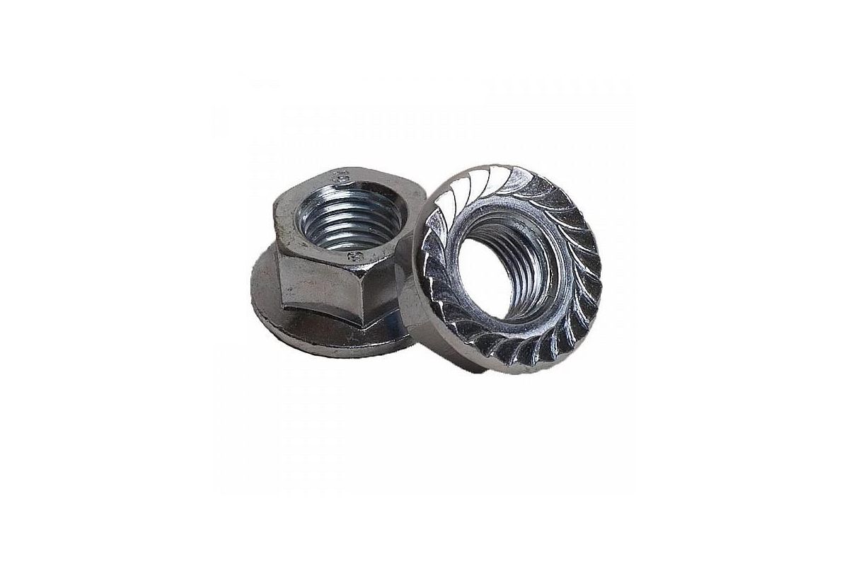 Применяется в технологических ситуациях, когда необходимо прочно закрепить плоскости при помощи болта и гайки и одновременно не повредить площадь соединяемых элементов. Рифленый фланец предотвращает самоотвинчивание резьбового соединения. В основном гайка применяется без использования пружинных и стопорных шайб, что ускоряет процесс монтажа. Используется вместе с болтами, винтами и другим метрическим крепежом. Основное использованиеьство, машиностроение, автомобилестроение, сборка шкафов и рамных конструкций , маиностроение и строительство.й сфере производства.