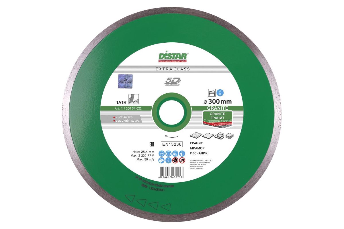 С непрерывным алмазным слоем, позволяет добиться ровного реза без сколов. Предназначен для резки гранита 1-5 категории, базальта, лабрадорита. Лазерная сегментация алмазного слоя позволяет улучшить охлаждение корпуса, вынос шлама и, соответственно, производительность инструмента, сохраняя высокое качество реза и тонкость обработки.